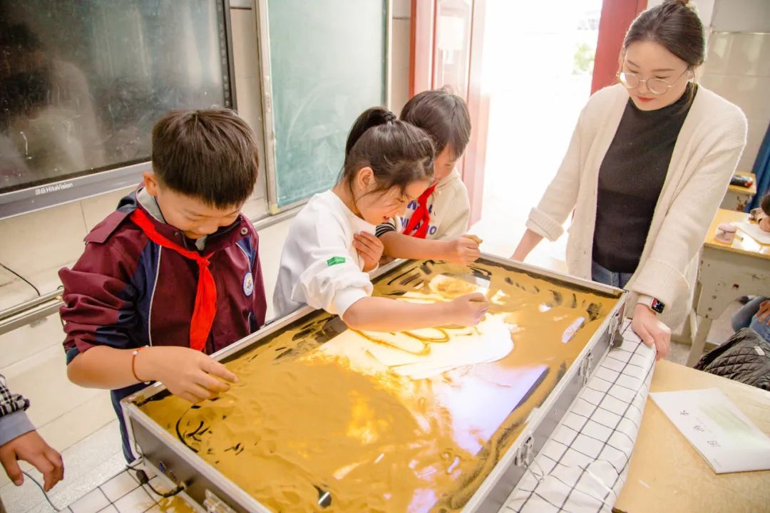 唐老师、刘老师、肖老师心头大事,唐老师选择用沙画这种艺术表达形式,让孩子自由发挥,肆意创造。刘老师、肖老师选择以舞蹈的方式让大家感悟音乐律动