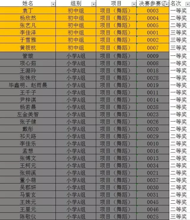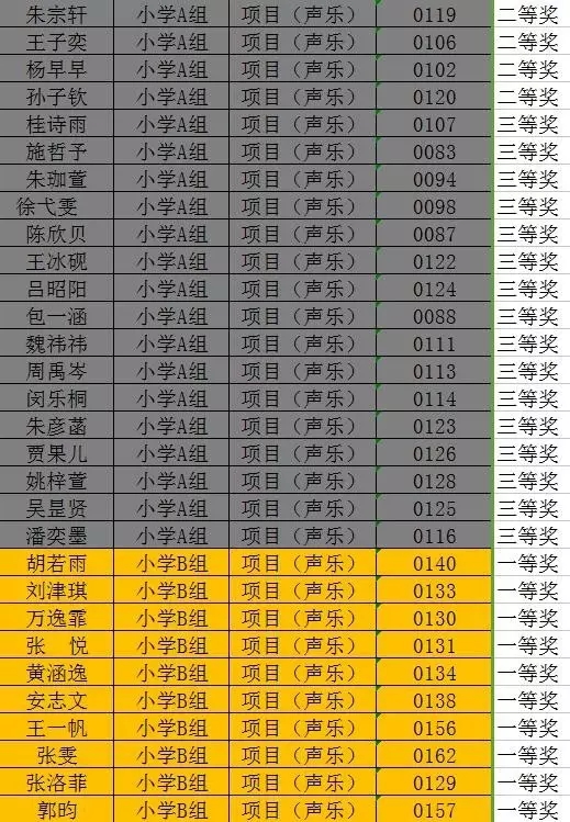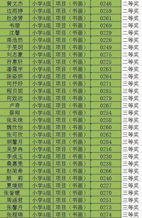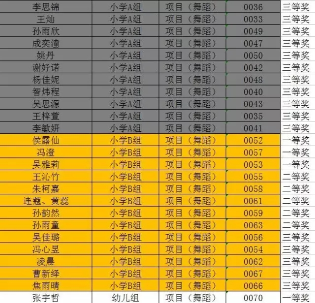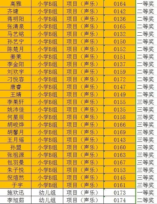 淮安市第二届“十佳风采少年”评选暨少儿风采大赛决赛在大家的掌声中圆满结束,本次比赛共分舞蹈、声乐、书画、语言、器乐、体育竞技六项比赛,根据年龄分为幼儿组、小学A组、小学B组、初中组。现将获奖名单公布如下,祝贺各位获奖的同学们。