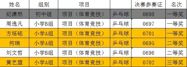 淮安市第二届“十佳风采少年”评选暨少儿风采大赛决赛在大家的掌声中圆满结束,本次比赛共分舞蹈、声乐、书画、语言、器乐、体育竞技六项比赛,根据年龄分为幼儿组、小学A组、小学B组、初中组。现将获奖名单公布如下,祝贺各位获奖的同学们。 乒乓球